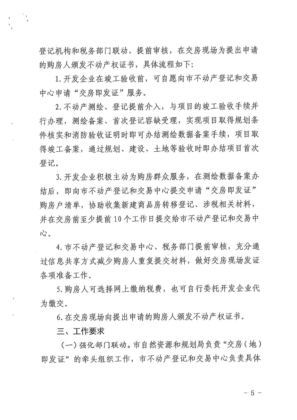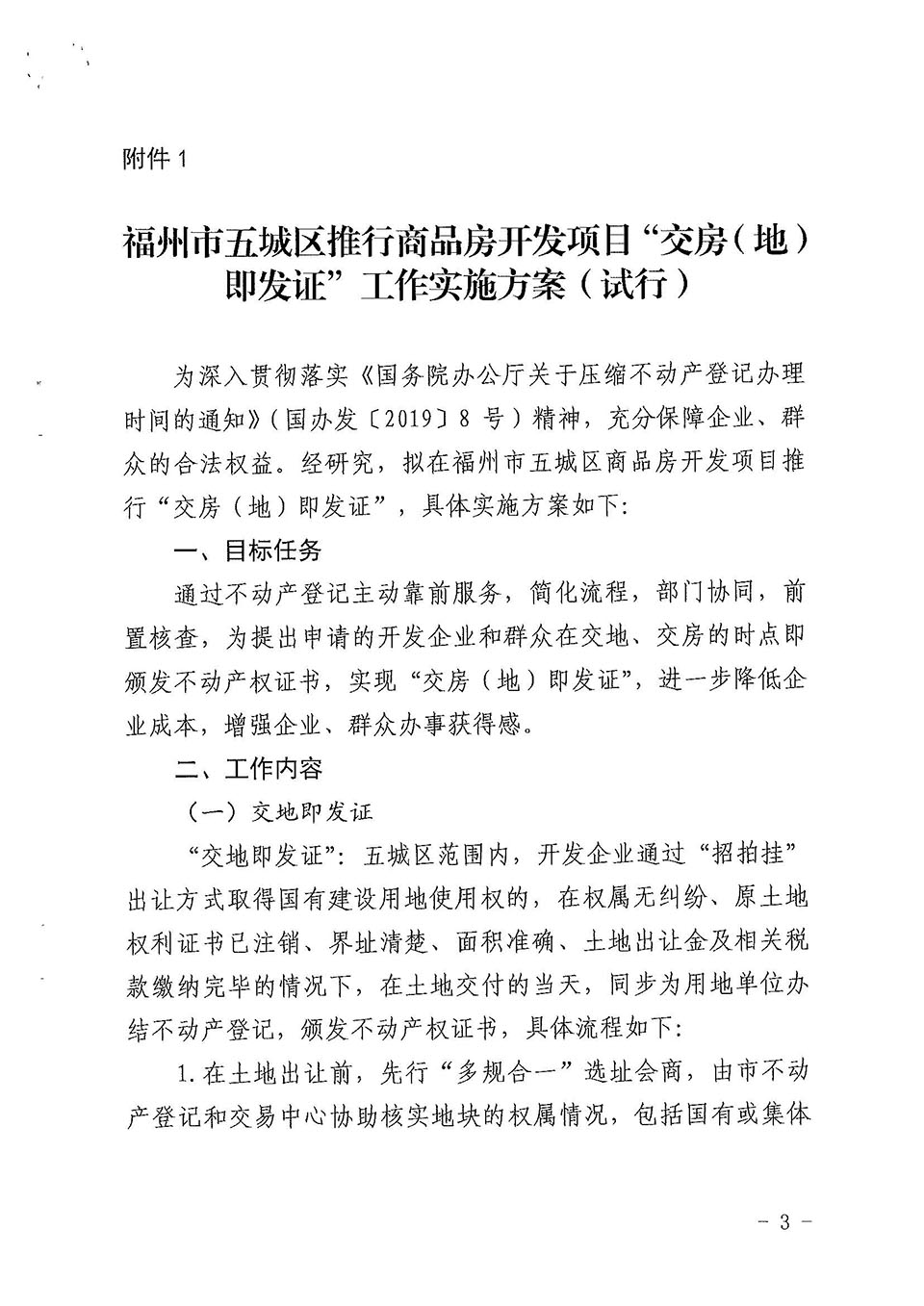 福州市五城区推行商品房开发项目“交房(地)即发证”工作实施方案(试行)