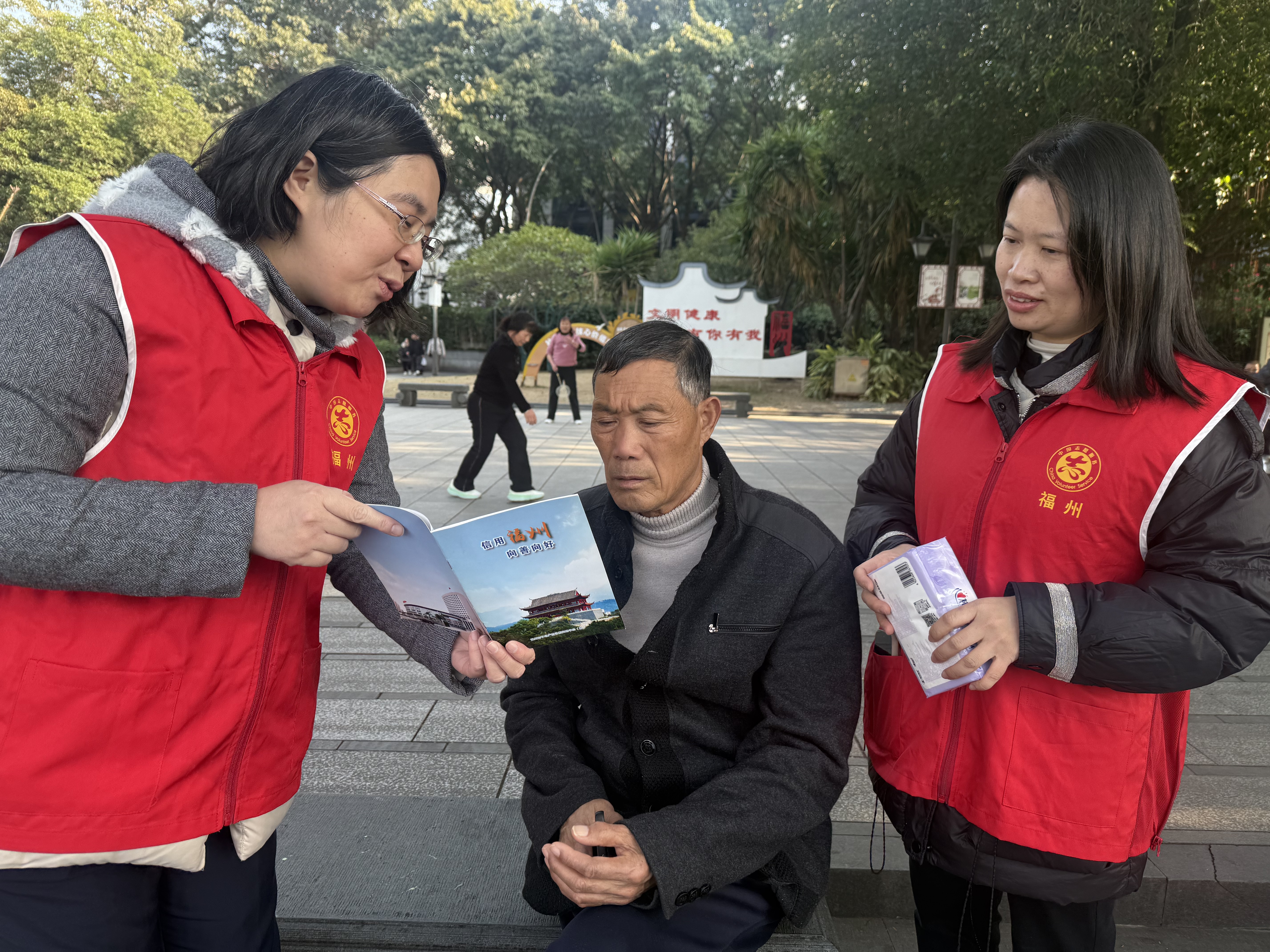 为进一步推进社会信用体系建设,增强市民诚信意识,营造“知信、用信、守信”的良好社会氛围,2026年1月9日下午,福州市不动产登记和交易中心台江分中心联合共建单位鼓楼区西湖社区,在西湖公园晨曦广场共同开展了诚信主题志愿宣传服务活动。