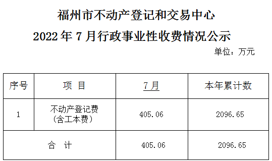 福州市不动产登记和交易中心2022年行政事业性收费情况公示(7月)