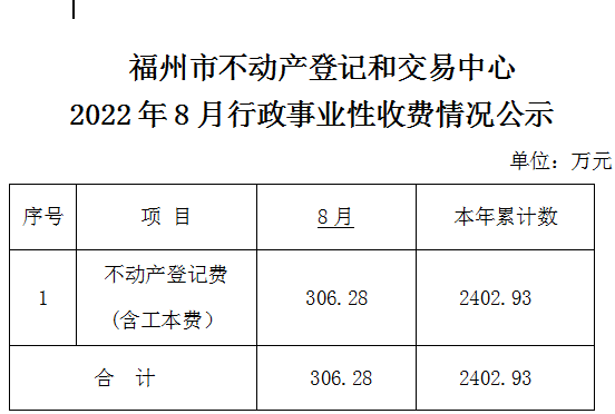 福州市不动产登记和交易中心2022年行政事业性收费情况公示(8月)
