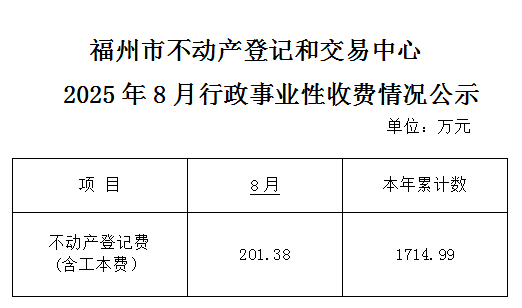 福州市不动产登记和交易中心2025年行政事业性收费情况公示(8月)