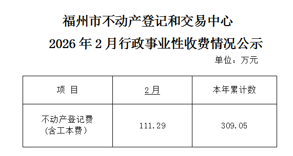福州市不动产登记和交易中心2026年行政事业性收费情况公示(2月)